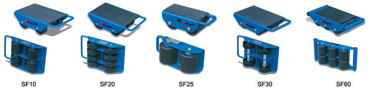 注意事頂: 以下滑動輪系列產(chǎn)品的額定載重量是指受力為鋼制表面時,滑動輪組件所能承受的最大載荷,想要安全可靠的移動載荷,最重要的是受力面的材料。瓷磚或易碎裂的受力面是不適合滑動輪工作的,在混凝土或停機坪受力面上工作時,滑動輪的載重量將受到一定的限制(取決于受力面的設(shè)計壓力和表面平整度)。 建議鋪置厚度為10mm以上的鋼板在受力面上,滑動輪的拉力一般為實際載重量的4%-7%(視受力面的平整度而定)。在斜坡上工作時,一定要采取一些安全預(yù)防措施,避免滑動輪失控和載荷傾翻。 選用滑動輪時,應(yīng)考慮載荷重量是否均勻分布,以確保單個滑動輪單元的受力在其額定載重量之內(nèi),如有必要,可局部增加滑動輪單元的數(shù)量。 ● 與撬棒或千斤頂配合使用.可用于重型貨物的移動 ● 耐磨橡膠表面可防止載荷滑動并有效保護載荷表面
