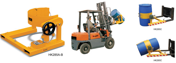 ● HK285A,HK285B駕駛員無需離開叉車,通過鏈條即可實(shí)現(xiàn)油桶的翻轉(zhuǎn),HK285C通過手搖實(shí)現(xiàn)油桶翻轉(zhuǎn)