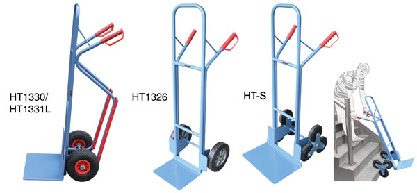 ● 實(shí)心橡膠胎 ● 三輪配置的搬運(yùn)車用于上下樓梯的搬運(yùn) ● HT-S適用于樓梯高度小于185mm的場(chǎng)合
