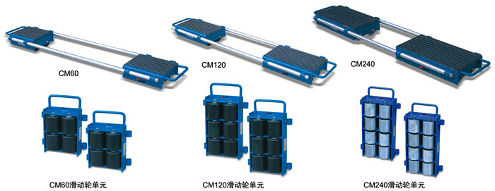 ● 每個(gè)CM系列滑動(dòng)輪由兩個(gè)滑動(dòng)輪單元及聯(lián)接桿組成 ● 載重能力大,適用于重型貨物的移動(dòng) ● 兩個(gè)滑動(dòng)輪單元之間的間距可調(diào)節(jié)